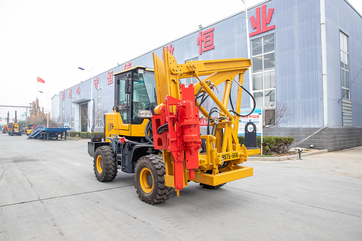 The loading guardrail pile driver integrates driving, pulling and drilling, and is mainly used for highway guardrail piles, photovoltaic panel installation, etc.