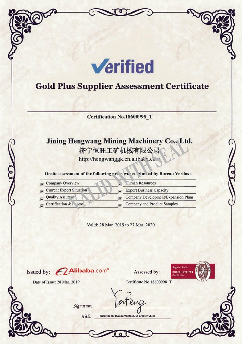 Gold plus supplier assessment certificate