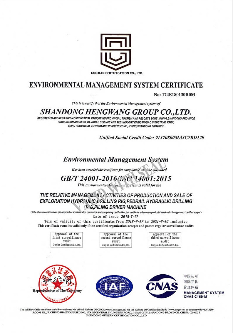 Environment management system certificate