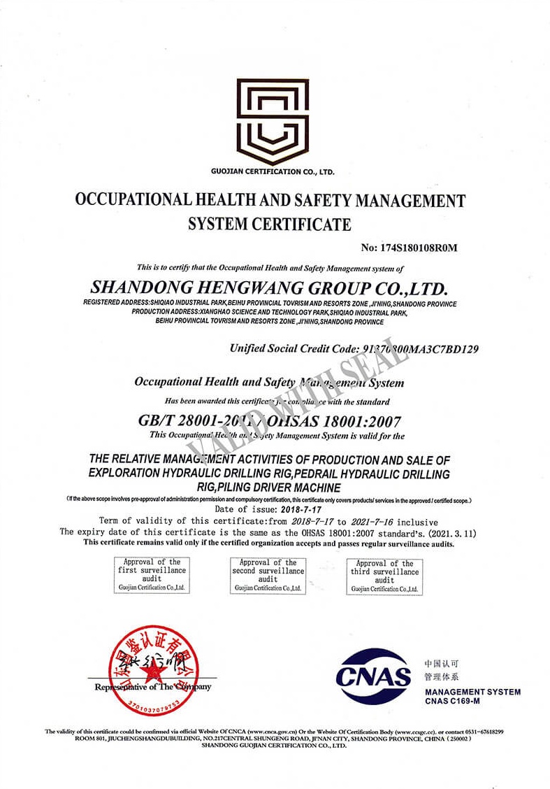 Occupational health and safety management system certificate