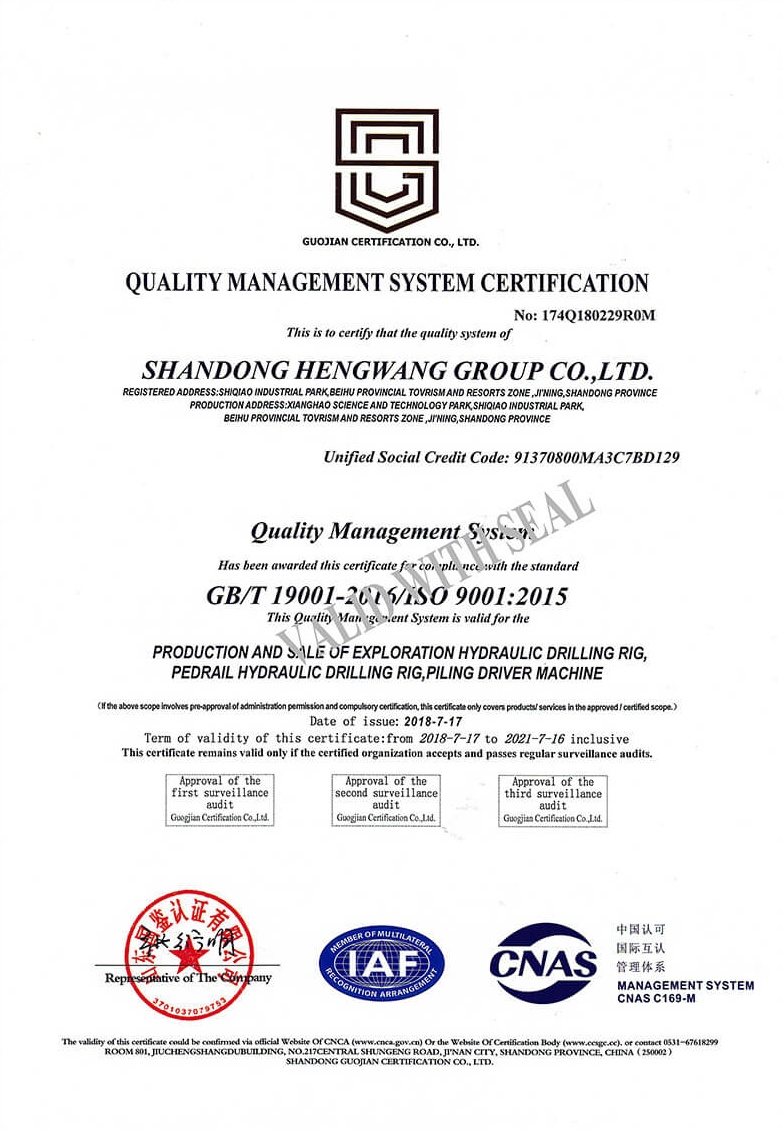 Quality management system certificate